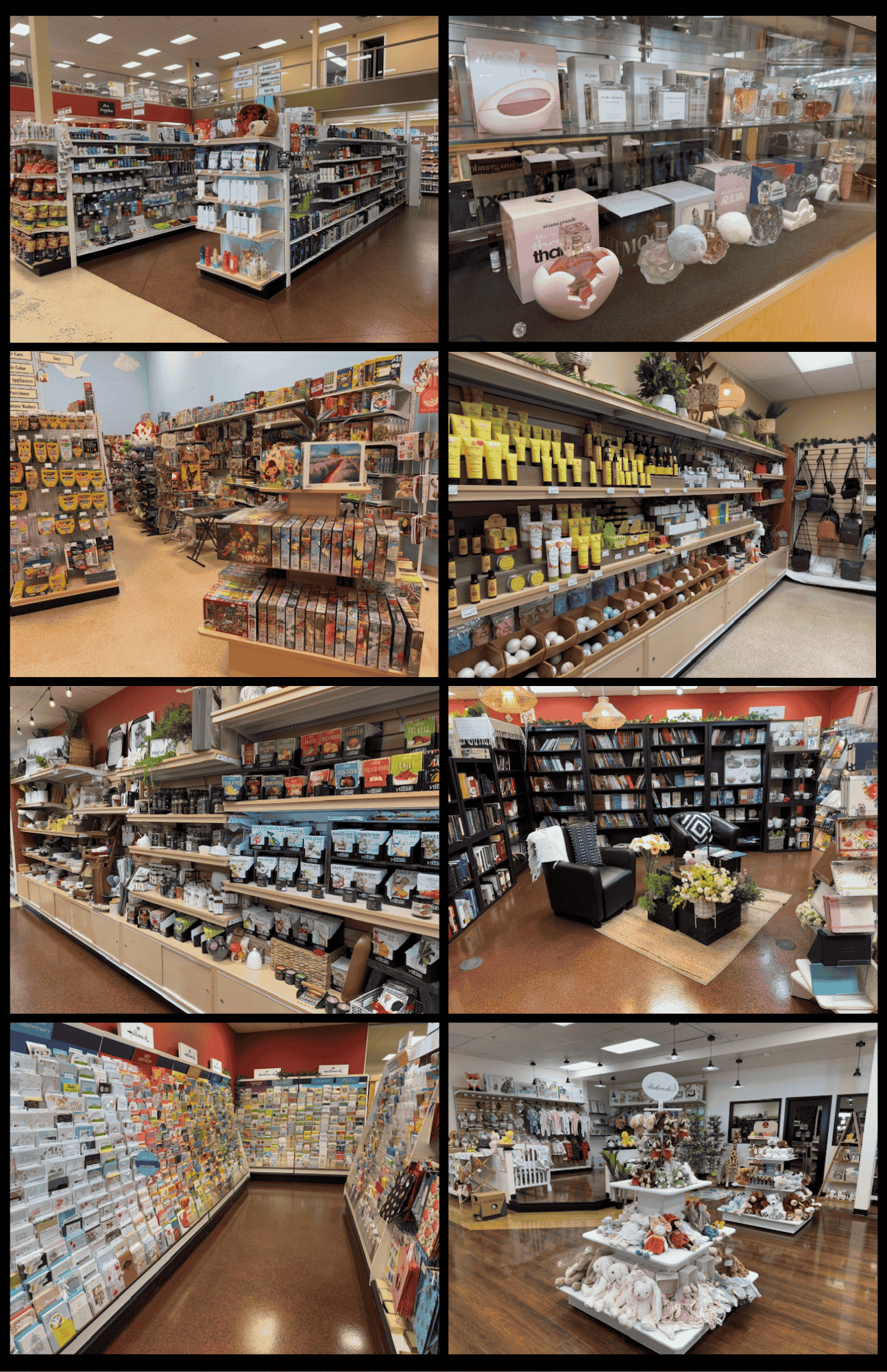 Pictures, Picture Frames, Candy Shoppe, Collectables, Cook Books, Kitchen Supplies, Cosmetics, Wedding Supplies, Perfume, Hockey Collectibles, Jewellery, Gags & Novelties, Skin Care, Foot Wear, Home Health Care, Water, Baby Supplies, Strollers, Stationary, Party Supplies, Puzzles, Rubik's Cubes, Z-Cubes, Board Games, and other Games, School Supplies, Scrap-Booking, Art Supplies, Watches & Batteries